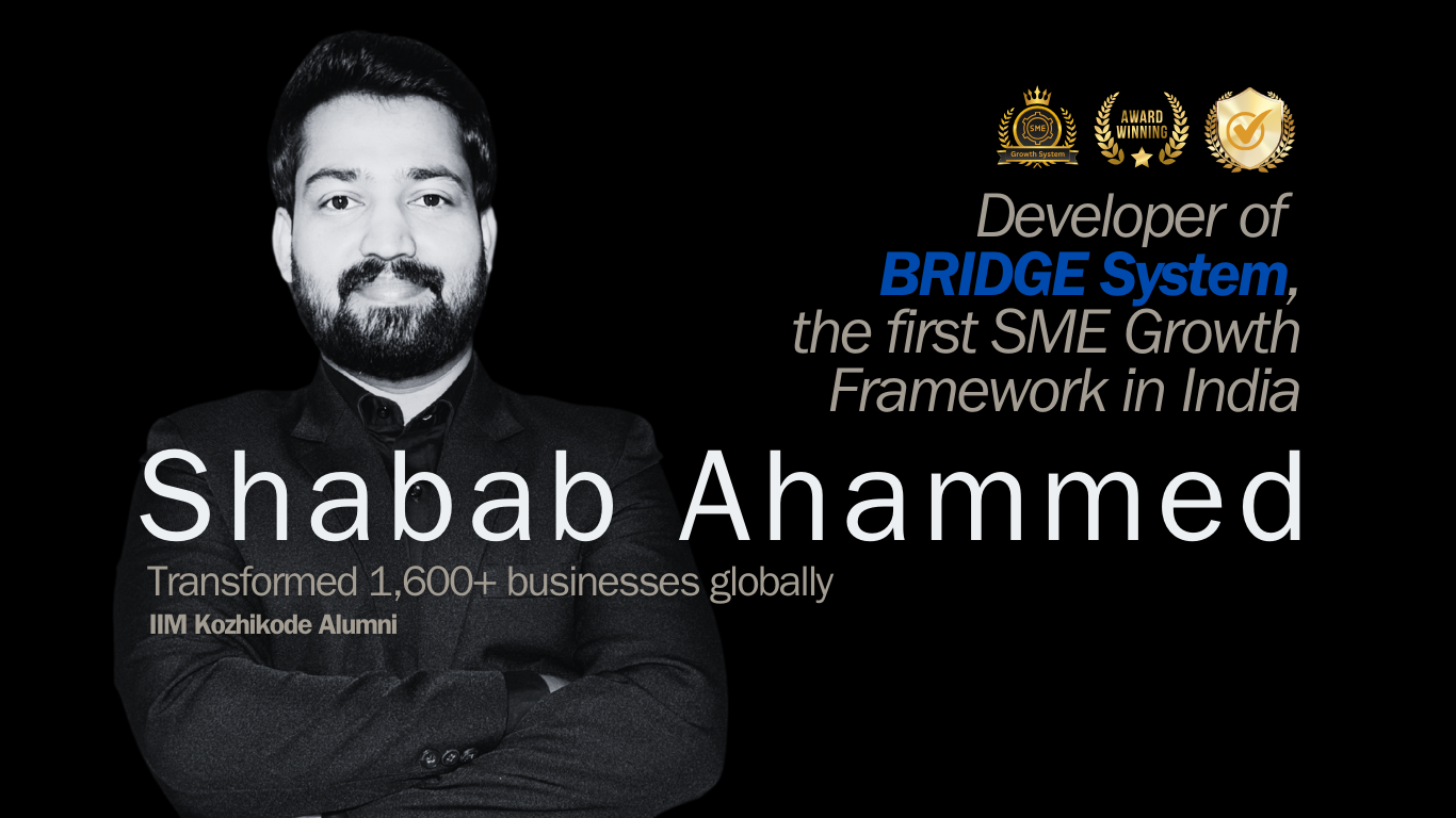 Shabab Ahammed is a result-driven Business Growth Trainer and CEO of Businex Incorporation, best known for developing the BRIDGE System, a practical framework that transforms struggling businesses into growth-focused enterprises. With over 12 years of hands-on industry experience, he has guided SMEs across sectors to build strong foundations. He has helped 1000+ entrepreneurs and guided over 600 businesses across India and the GCC. His mission is clear — turn every struggling business